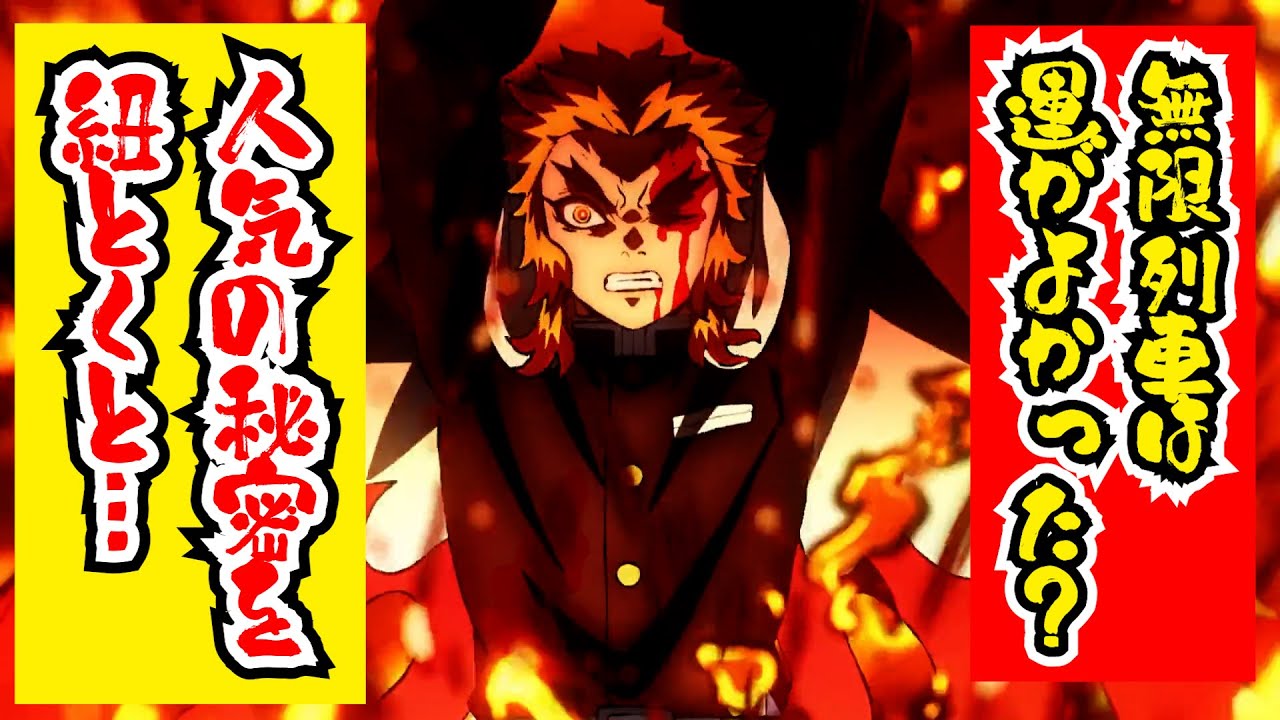煉獄杏寿郎の人気も、興行収入1位の要因です。週刊少年ジャンプで2回行われた「鬼滅の刃」登場キャラクターの公式人気投票。ここで無限列車主要キャラクター、煉獄杏寿郎の順位も発表され、第1回・第2回とも7位で、トップ10入りしています。