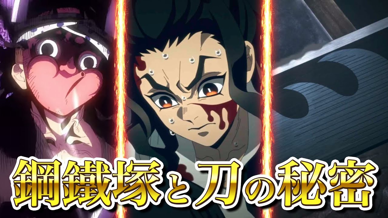 鋼鐵塚は玉壺に何度攻撃されても手を止めない。振り返りもしない。お面は割れ落ちイケメンな素顔が露になる。鋼鐵塚の熱量・独り言により、この刀が普通の刀でないことは明白。戦国時代の鉄は質が良いとされ、刀を作った刀匠もかなり優れた者がいたよう。作者は不明です。
